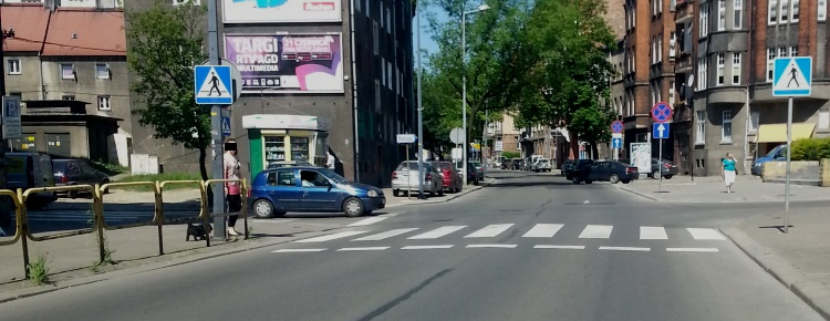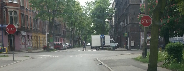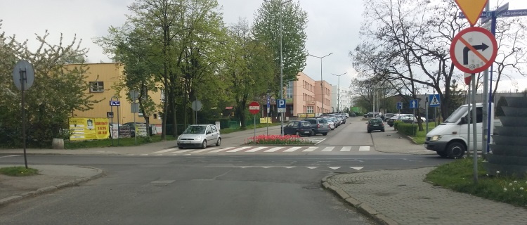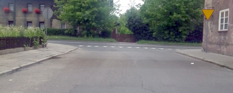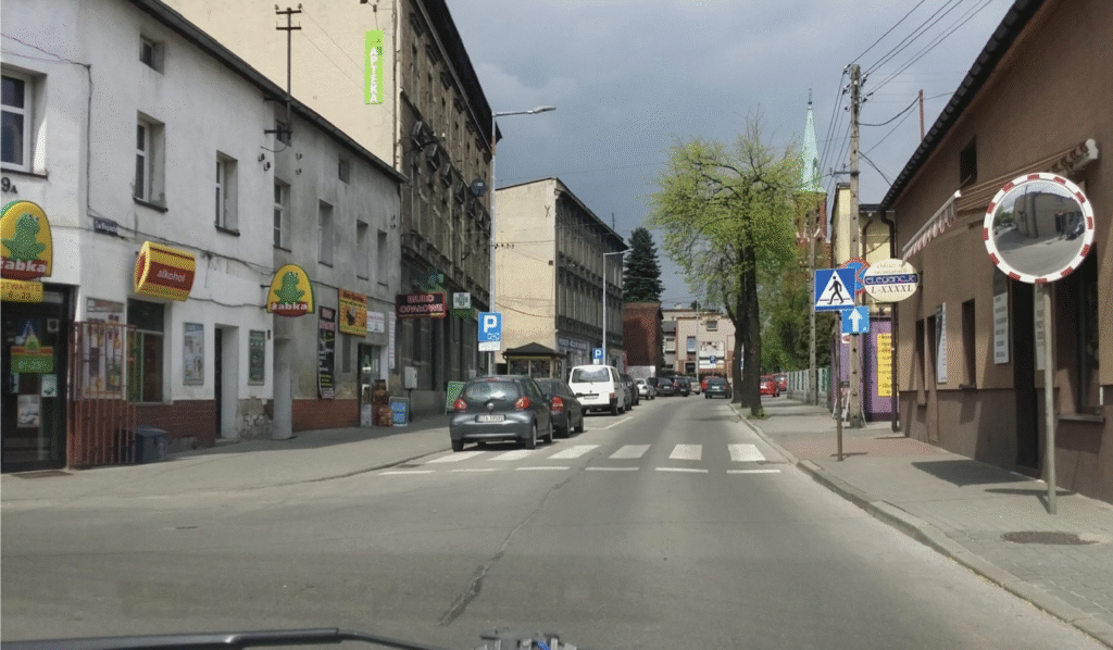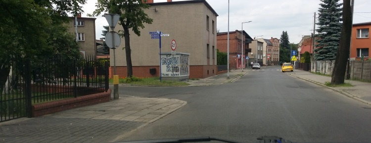 Radzionków – skręcając w lewo przed Żabką, wjeżdżasz na drogę dwukierunkową.